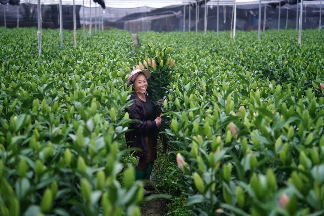 除了传统盆花,白云的鲜切花也备受青睐,品质上乘、供应充足。其中百合、剑兰凭借雅致的花型和美好的寓意,成为年宵花市场的“热门选手”。