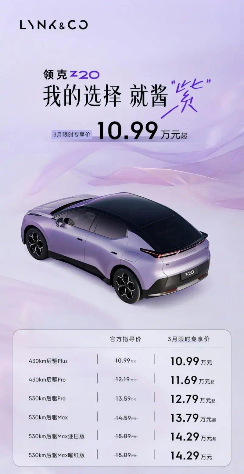 三月限时专享价同步开启,全系10.99万元起,530km长续航版本至高优惠8000元。3月下订还有机会带走这套联名盲盒,让这份紫色从车身延伸到掌心。