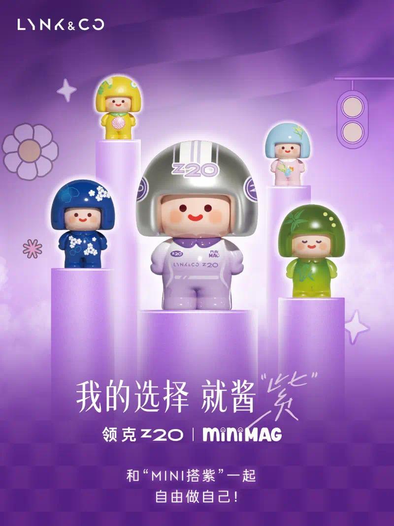 这个春天,领克Z20还准备了一份惊喜——与潮流IP Mini Mag联名推出“mini搭紫”盲盒,五大IP形象对应女性多元人格,隐藏款“就酱紫”用软萌外形包裹坚韧内核。那种可萌可飒的反差感,正是选择这抹紫的人最真实的模样:可以温柔,也可以锋利;可以精致,也可以洒脱。